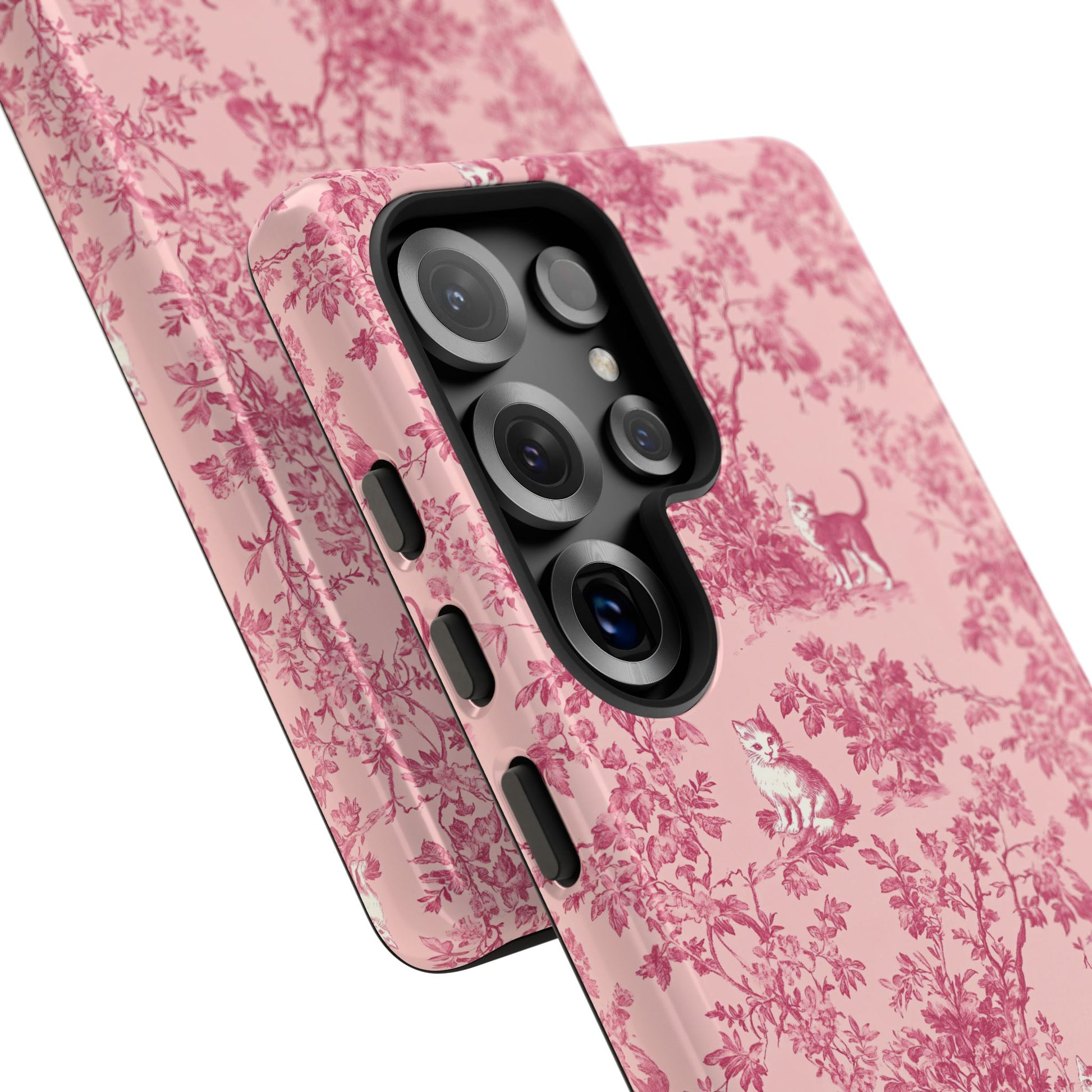 Pink Toile de Jouy Cats Tough Phone Case – Vintage Parisian Chic